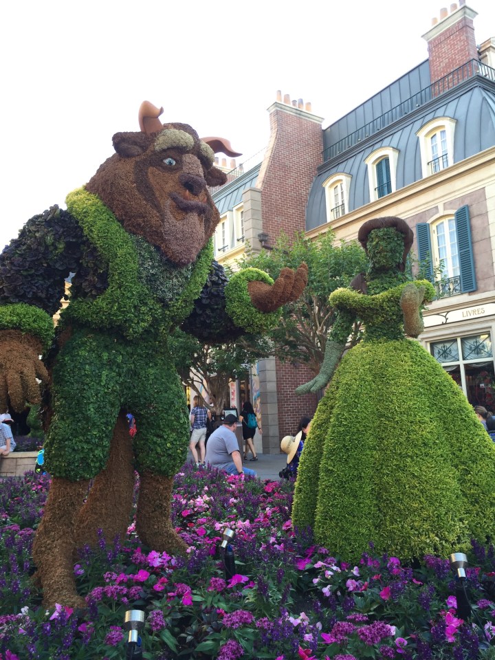 Como fomos em abril o EPCOT estava na vibe do festival Flower & Garden e é tão lindo ver as esculturas e a forma como eles decoram o parque. Só me arrependo de ter ido na parte da tarde – SUPER LOTADO – e ter dividido ele com outro passeio – acho que foi com o shopping – porque o cansaço era tanto que considerei sentar no meio do parque e ficar por lá até voltar a sentir os pés haha