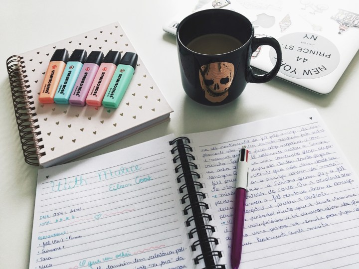 Como falei no post anterior, eu sempre preciso anotar tudo a mão, então basicamente faço tudo dessa forma e em cadernos específicos (ou pelo menos tento porque eu sou a louca dos cadernos e isso pode acabar me prejudicando um pouco, já que às vezes eu os compro de forma compulsiva e quase nunca consigo acabar de usar um, haha) para não me confundir no meio de tanta anotação, afinal, eu registro praticamente tudo assim.