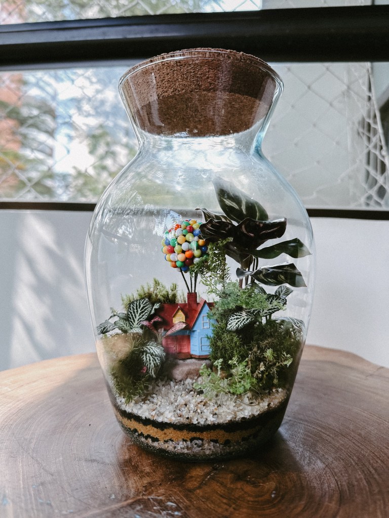 Um minuto de silêncio para apreciar esse terrário que tem a casinha do UP nele. Coisa mais fofa que precisava colocar aqui, haha.
